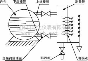 由于水和汽的導電性能差異很大。以發電廠汽包為例,在溫度350℃以下時,純水的導電率<106歐姆/厘米,而蒸汽的電阻率>108歐姆/厘米。測量筒的作用就是將水位的變化通過接點電阻的變化取得信號,依照“數”的關系饋送至二次表。